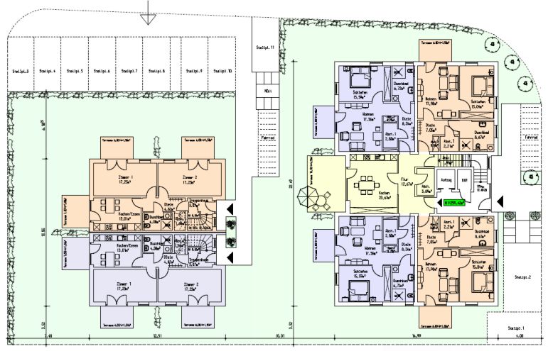 Wohngemeinschaftshaus A (r.) und Wohngemeinschaftshaus B (l.)