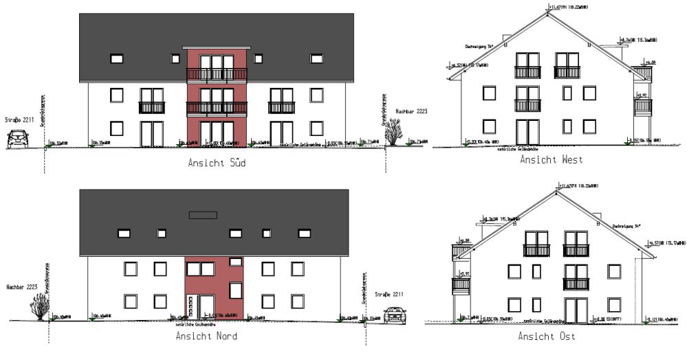 In Haus B werden die beiden Wohngemeinschaften im Erdgeschoss, die Zuwegung im Gebäude sowie auch der Eingangsbereich barrierefrei und eingeschränkt mit Rollstuhl nutzbar geplant. Die geplante Barrierefreiheit im Ober- und Dachgeschoss ist so beschaffen, dass ein späterer Umbau für weiteren bzw. über die Grundplanung hinausgehenden Individualbedarf möglich ist.