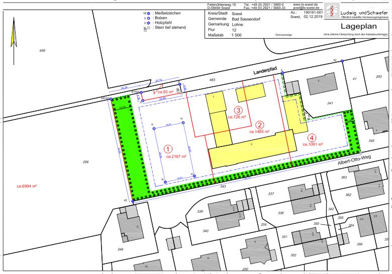 Hier in dem Lageplan von Ludwig und Schwefer sehen wir den ehemaligen Bauhof(gelbe Markierung) der Gemeinde Bad Sassendorf. Der Abbruch des Bauhofes erfolgt im Februar 2020.Der Abbruch eines noch vermieteten Wohnhauses erfolgt erst nach Fertigstellung des Mehrgenerationenwohnhauses 1,in dem die Familie ein neues Zuhause finden wird.